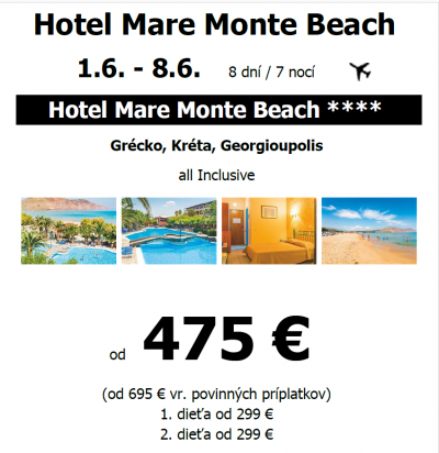 Kréta – Hersonissos teraz za zvýhodnenú cenu len 517,60€/os. s komplet poistením!!!