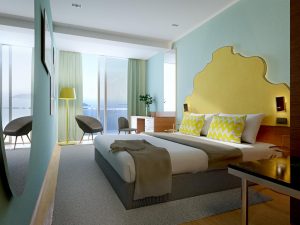 luxusné klimatizované 2lôžkové izby Comfort a Deluxe (25 m2), ďalej Superior (28-30m2) a Junior Suite (60 m2 – 2 izby, 2 balkóny), vždy so sprchou a WC, balkónom, SAT TV, telefónom, Wi-Fi ZADARMO, fénom, minibarom a trezorom. Izby Deluxe a Junior Suite majú výhľad na more.