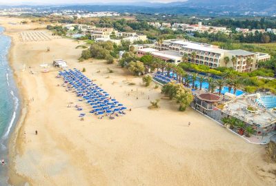 priamo pri pieskovej pláži Almiros s pozvoľným vstupom do mora • na severozápadnom pobreží Kréty • cca 80 m autobusová zastávka • cca 1 km od malebného letoviska Georgioupolis s obchodmi, tavernami a barmi (dá sa zájsť pešo po pláži alebo miestnej komunikácii) • cca 20 km od Rethymna • cca 45 km od Chanie • cca 120 km od letiska v Heraklione