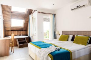 2- lôžkové štandardné izby s možnosťou 1 prísteľky (17 – 24 m2), eco izby (11 – 17 m2, max. 2+1), deluxe izby (78 m2, 2 miestnosti), hotel je určený pre osoby staršie ako 16 r., klimatizácia, kúpeľňa, sprcha, sušič na vlasy, TV. Za poplatok: trezor, minibar.
