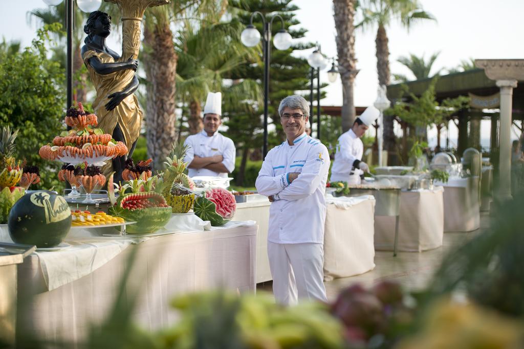 All inclusive formou bufetu, raňajky 07:00 – 10:00, obedy 12:30 – 14:00, večere 19:00 – 21:00, neskoré raňajky 10:00 – 10:30, polnočný snack 00:00 – 01:00, detské menu, káva, čaj, koláčiky 16:30 – 17:30, lobby bar 10:00 – 00:00, bar pri bazéne 10:00 – 00:00, alkoholické a nealkoholické nápoje miestnej výroby. V reštauráciách sa vyžaduje dress code. Za poplatok: a´la carte reštaurácie (turecká, rybacia) (1x za pobyt vstup zadarmo, rezervácia nutná deň vopred), čerstvé ovocné šťavy, importované nápoje, disco bar 00:00 – 02:00. Podrobný rozpis all inclusive programu dostanete na recepcii pri ubytovaní.